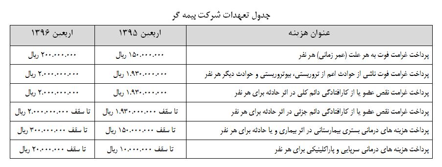 10- هزینه بیمه زائرین اربعین با رایزنی هایی که با شرکت بیمه گر صورت پذیرفت نه تنها افزایش نیافته و برابر نرخ سال گذشته یعنی 188.000ریال تعیین گردیده است بلکه بعضاً سقف تعهدات شرکت بیمه گر افزایش نیز یافته است به گونه ای که در بخش هزینه های درمانی تا صد در صد افزایش پرداخت غرامت از سوی شرکت بیمه گر توافق شده است.